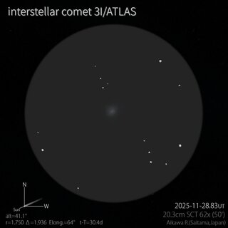 ※月は地平線下。月齢☽=8.55 月離角 Elong☽= 161°(地心) 月高度 alt☽=-56.6°軌道の元期:20251121 (観測日は元期から7.8日経過)