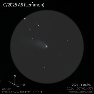 - 01.39UT m1=-, DC=6, dia=4', tail=17' (20.3cmシュミットカセグレン 62倍)
