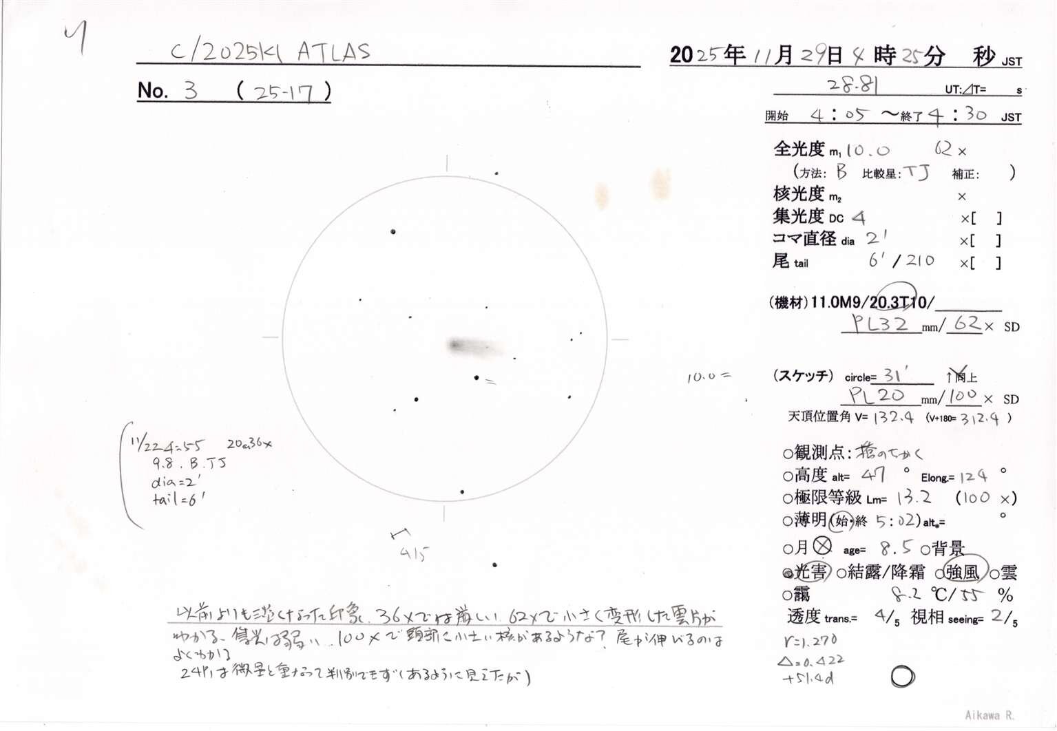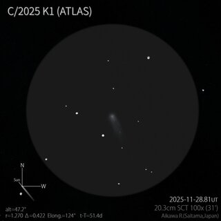 11月22日4:55に20cm36倍で9.8等(B,TJ)dia=2'、tail=6'。